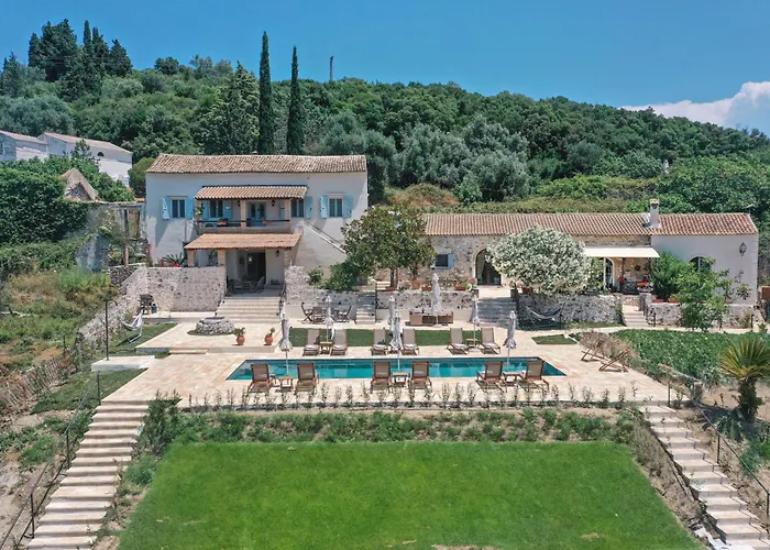 Situated nearly a 10-minute drive from Shell Museum, Marcora Historic Mansion Guest House Strongyli villa features a terrace with views of the mountain. Offering a seasonal outdoor swimming pool, the Strongyli country house invites guests to visit Benitses Public Beach, located 3.7 km away.